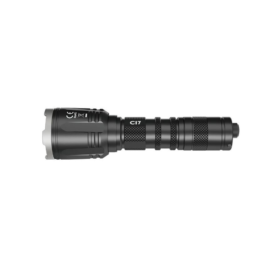 The Nitecore CI7 is a professional dual-output tactical flashlight designed for demanding applications where both high-intensity white light and covert infrared illumination are essential. With a simple head rotation, users can switch between the 2500-lumen white beam and a powerful 7000mW 940nm infrared output, making this flashlight suitable for night vision operations, law enforcement, search and rescue, and military use. Its robust Type III hard-anodized aluminum body and IP68 waterproof rating ensure reliable performance in harsh conditions, while intuitive one-handed controls allow fast operation in the field.