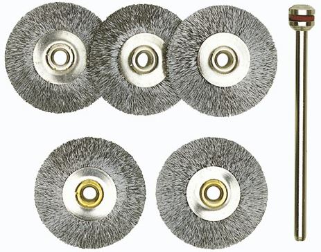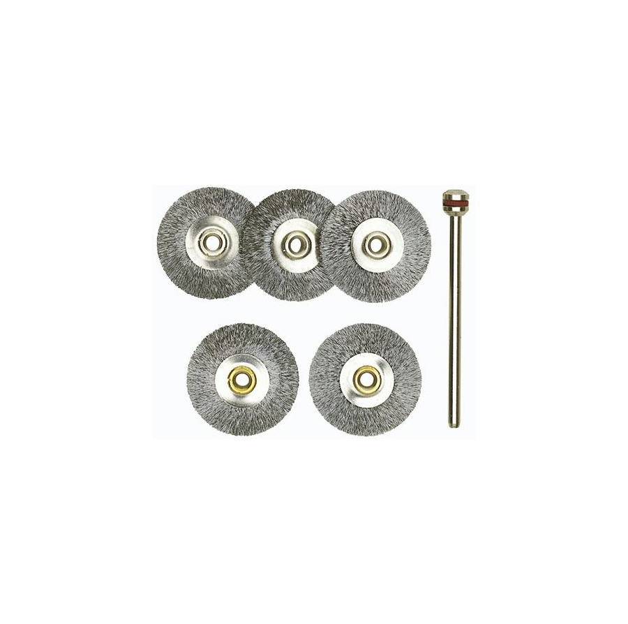 • Nerūdijančio plieno vieliniai šepečiai, Ø 22 mm, 5 vnt. + laikiklis