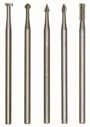 • Volframo-vanadžio frezos Proxxon MICROMOT 28710 – 5 vnt., įvairių formų