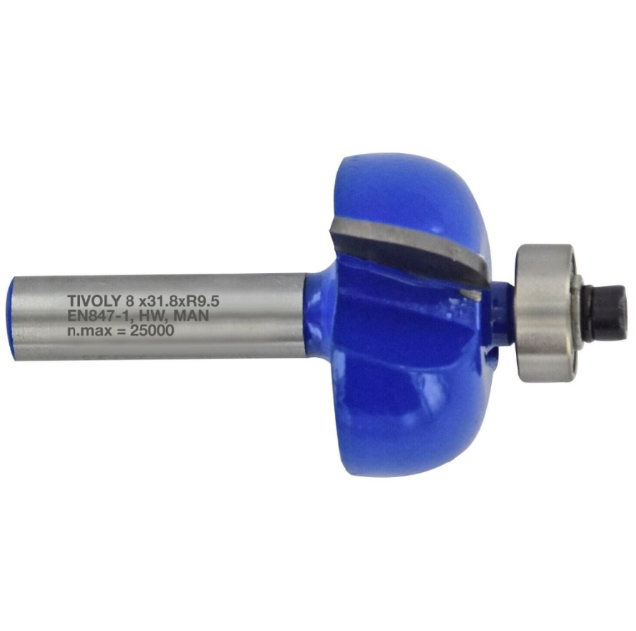 Enables the creation of a cove profile with the desired radius of 9.5mm in hard or soft woods, melamine-coated woods, laminated woods and plastics.
