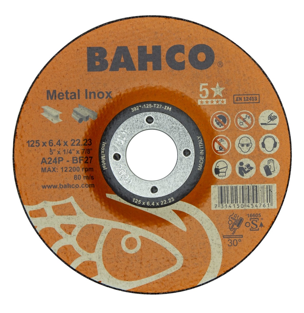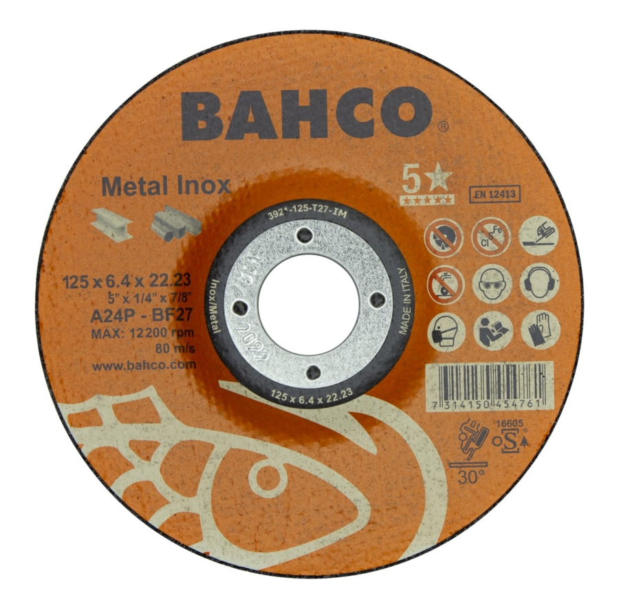Abrazyvinis metalo ir nerūdijančio plieno šlifavimo diskas Bahco A30S INOX+Fe T42 230x6,4x22.23mm