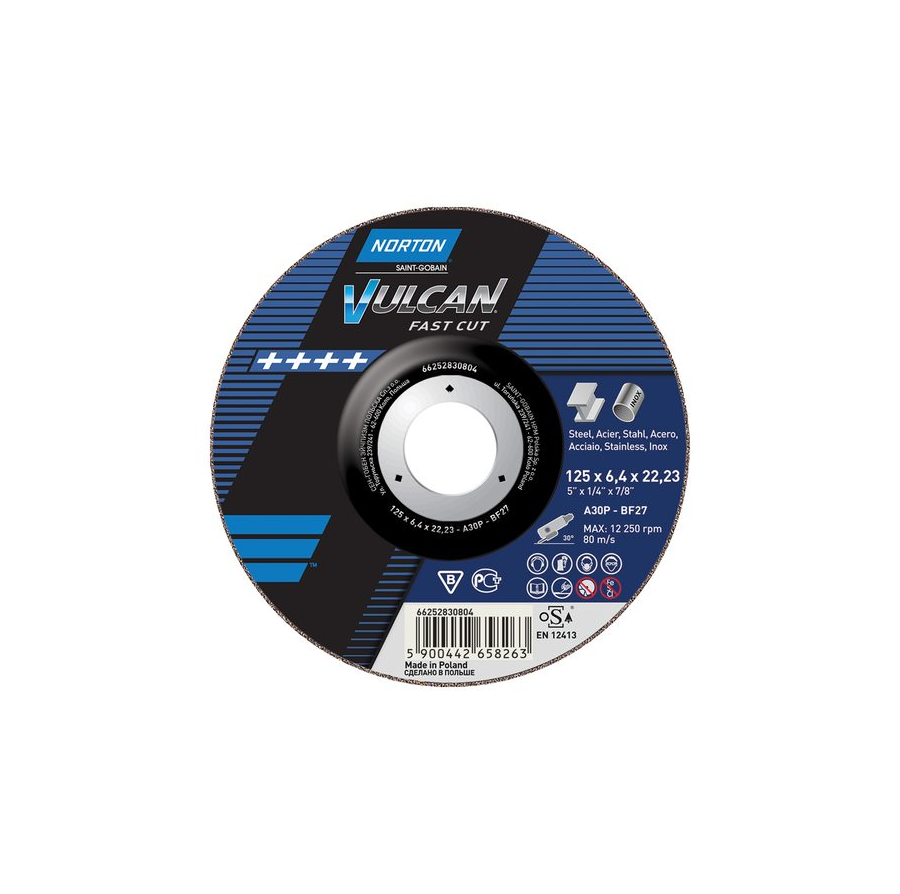 Abrazyvinis metalo/nerūdijančio plieno šlifavimo diskas Norton VULCAN A40S-125X6.4X22.2-T27 -VULCAN