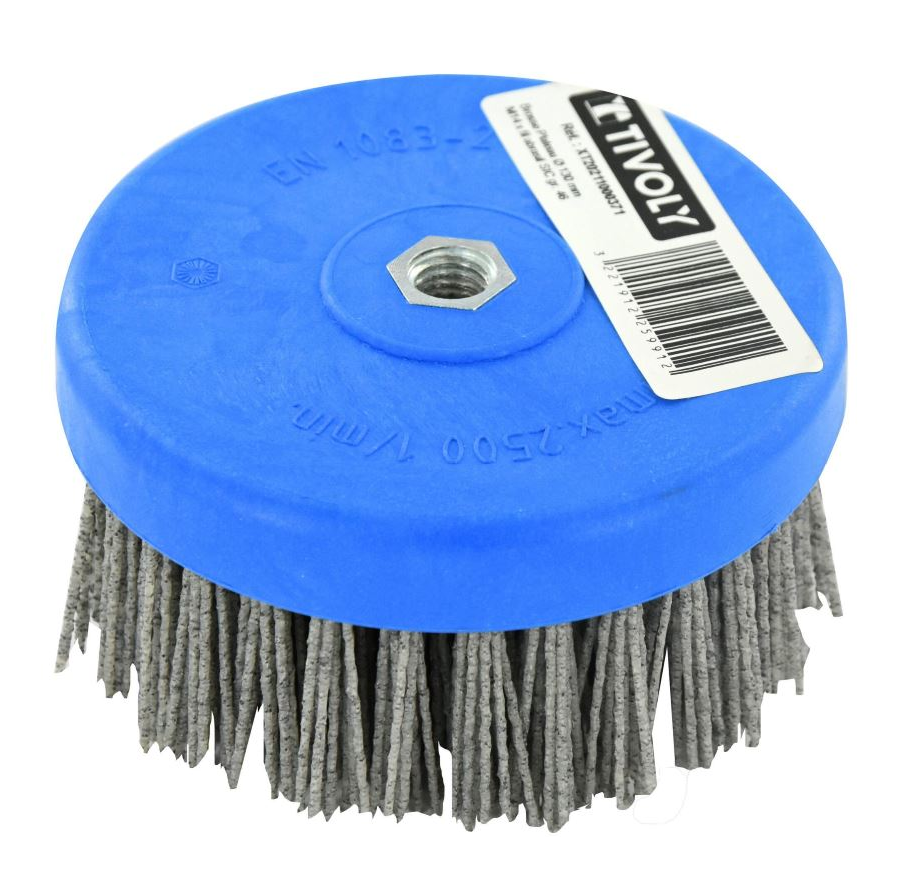 Nylon fibre: flexible bristle with integrated abrasive for slightly aggressive sanding.
