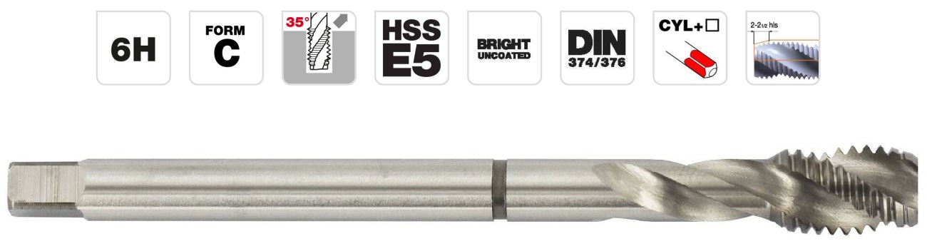 Spiral flute that allows chips to be evacuated through the entrance to the hole.