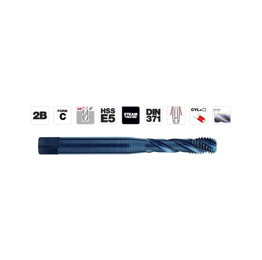 Reduced geometry of the threaded section at the end of the flute, designed to reduce cutting effort and the risk of jamming.